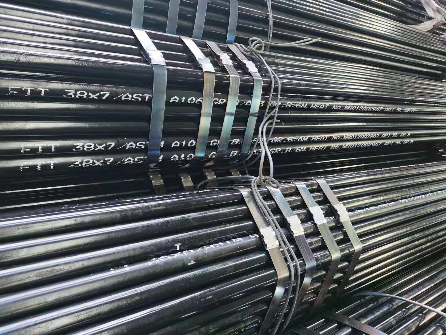 ASTM A106/A53 喷漆倒坡口的无缝管。ASTM 无缝钢管材质主要有ASME A53F A53-A B SA106B SA-106C A106B A106C A210C SA-210C GR.B SA106GR.B SA106GR.C等。他们都有相对应的国内的钢号。ASTM A333 -40℃-101℃低温无缝钢管.,ASTM