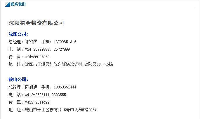 地址:沈阳新塔湾钢材市场C区39|40栋 联系人:许裕民 024-25727888 传真:024-86025858